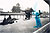 This same approach is used for the Kyoto Zen-Garden Project. Respecting the intrinsic value of the gardens, Ruiter didn't make an intervention within the actual gardens. He kept them untouched, only making a very sharp, black-and-white recording of them. But the photographs of the gardens were 'just' photographs and therefore a legitimate starting-point for his own additions. For example, he combined a photograph of the very ancient Kodai-ji-garden with a photograph of a red rose, being a cliche image in western culture of love and passion. The picture of the rose strongly contrasts the zen-garden, not only for the use of colour, but also for the blurred, unsharpe recording. As if Jean Ruiter underlines the artificiality of the rose compared to the clearness of the natural garden. In other works Ruiter fills the emptiness (he is still part of western culture) with the addition of a flat, plastic figure used for measuring the proportions of the human body. He uses the figure as an actor representing various scenes from ancient zen-writings. Curious detail is the fact that the figure is made according to the average proportions of a Japanese man. In this way Ruiter sophisticatedly interweaves differences between men and between cultures.